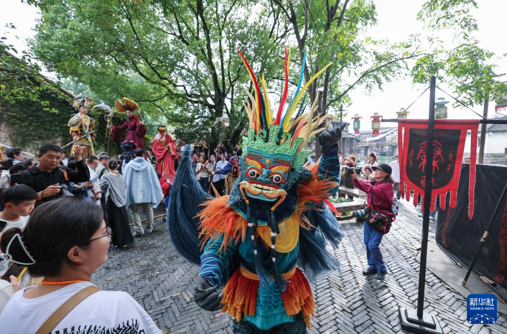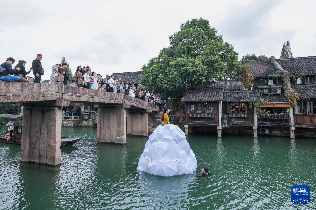 10月17日拍摄的乌镇戏剧节古镇嘉年华的踩街巡游。