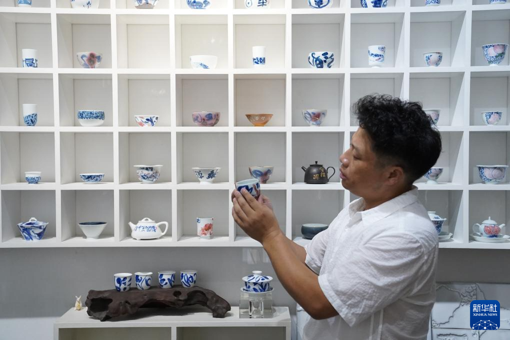 46岁的尹志军是江西陶瓷工艺美术职业技术学院教师,也是景德镇陶瓷书法非物质文化遗产代表性传承人。他将文字笔画拆解,结合色彩、设计和绘画,形成了自己独特的艺术风格。如今,尹志军创作的陶瓷书法作品已融入茶具、家居、装饰等生活用品和工艺品中,深受年轻人喜爱,作品也先后被中国工艺美术馆、江西省博物馆等收藏。