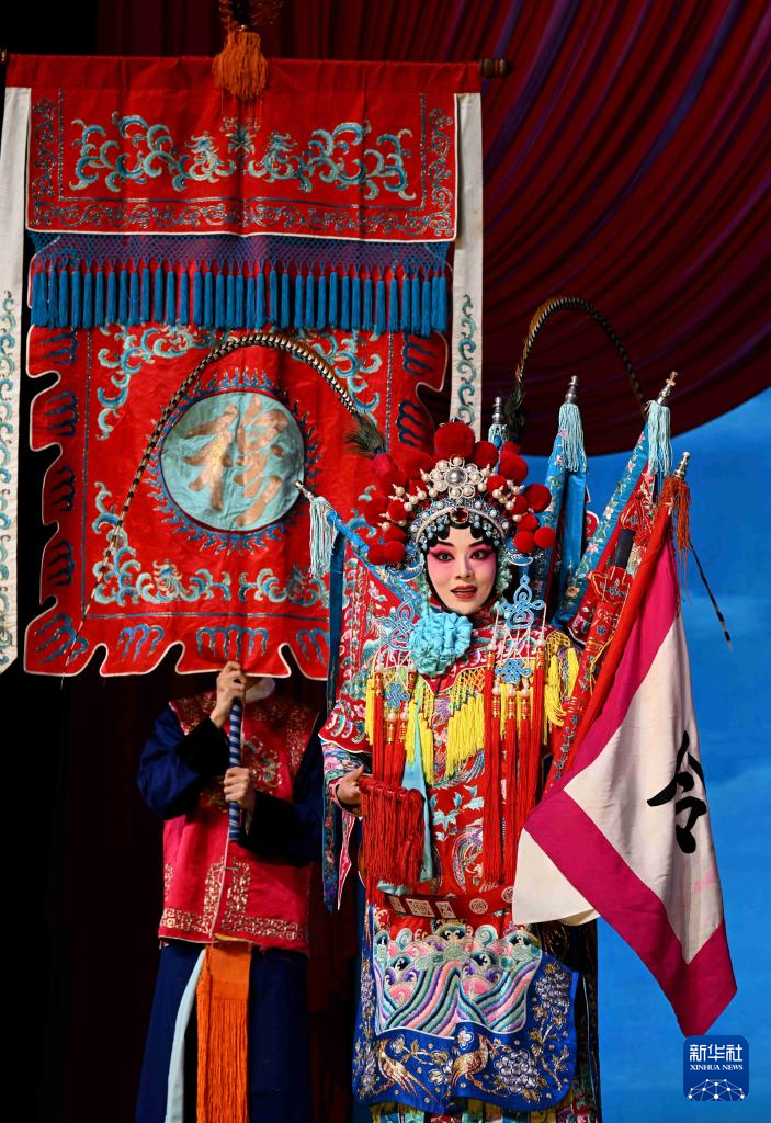 11月1日晚,国家京剧院演员在石家庄人民会堂表演京剧《穆桂英挂帅》。