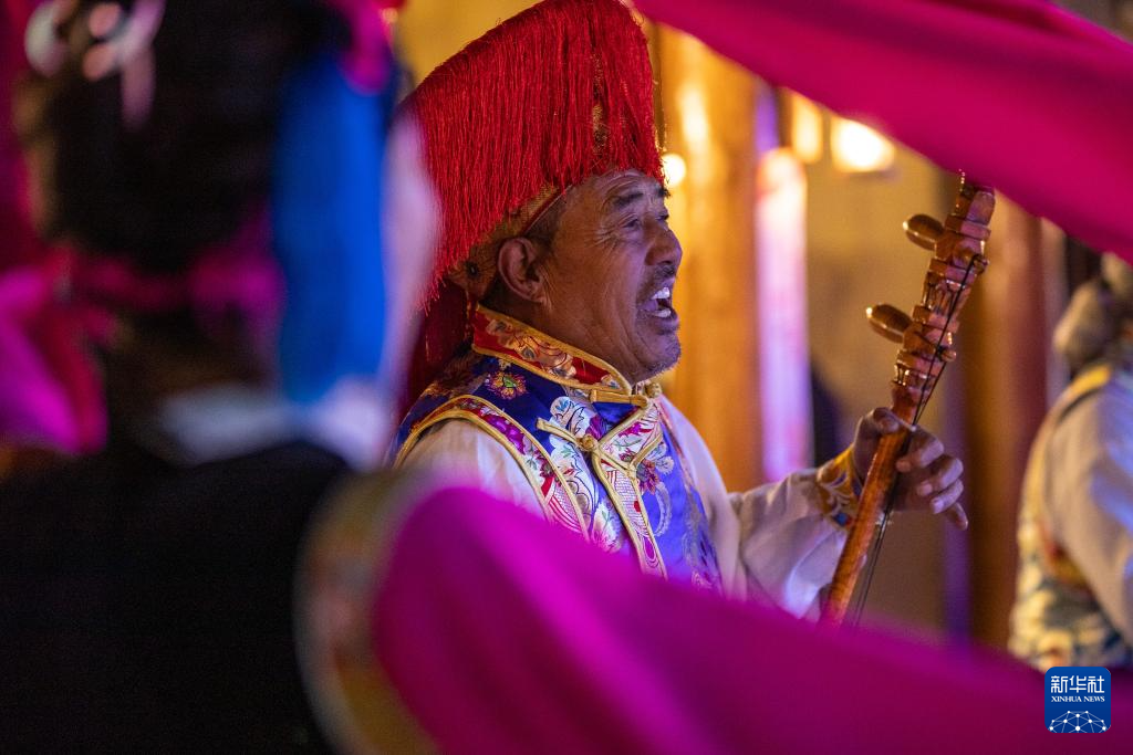 11月5日,在四川省甘孜藏族自治州巴塘县,王扎西在非遗传习体验馆表演巴塘弦子舞。在四川省甘孜藏族自治州巴塘县,人们时常跳起弦子舞,这是一种集诗、琴、歌、舞于一体的综合性表演艺术,领舞的弦胡手是表演是否成功的关键。弦胡,通常用柏木做琴筒,在琴杆顶部雕刻龙头宝塔。今年66岁的弦胡手王扎西是“巴塘弦子舞”的省级非遗传承人。为保护并传承弦子舞和弦胡制作技艺,王扎西在自己房屋里建起弦胡制作坊,并在各类活动中表演,展示弦胡的韵律和弦子舞的魅力。