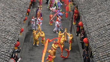 1月7日,在哈尔滨市兆麟公园,冰雕师们在雕琢冰雕作品(无人机照片)。
