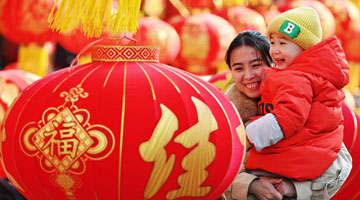 1月20日,小朋友在广州市一德路市场选购春节饰品。