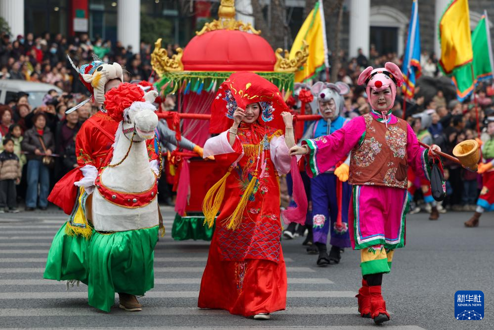 1月22日在绵竹年画节开幕式上拍摄的巡游队伍。