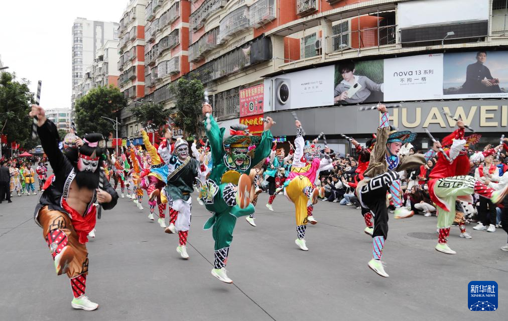 2月2日在广东汕头潮阳区“中华英歌 舞动潮阳——2025年春节潮阳英歌嘉年华活动”中拍摄的英歌表演。