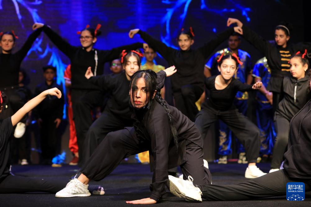 2月12日,演员在约旦首都安曼举办的“欢乐春节·元宵联欢会”上表演舞蹈。