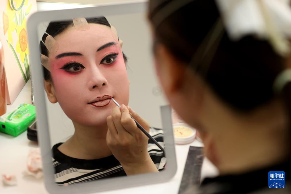 4月5日,在奥地利首都维也纳,演员在婺剧《白蛇传》演出前化妆。