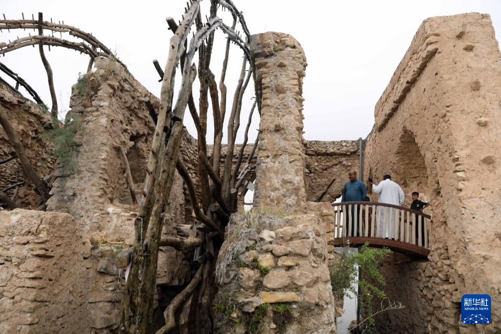 4月21日,人们在伊拉克安巴尔省参观幼发拉底河上的传统水车。