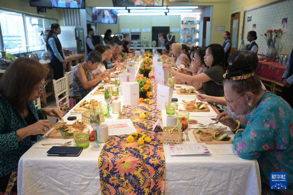 5月11日,人们在新加坡娘惹博物馆举行的新加坡文化遗产节活动中品尝娘惹糕点。