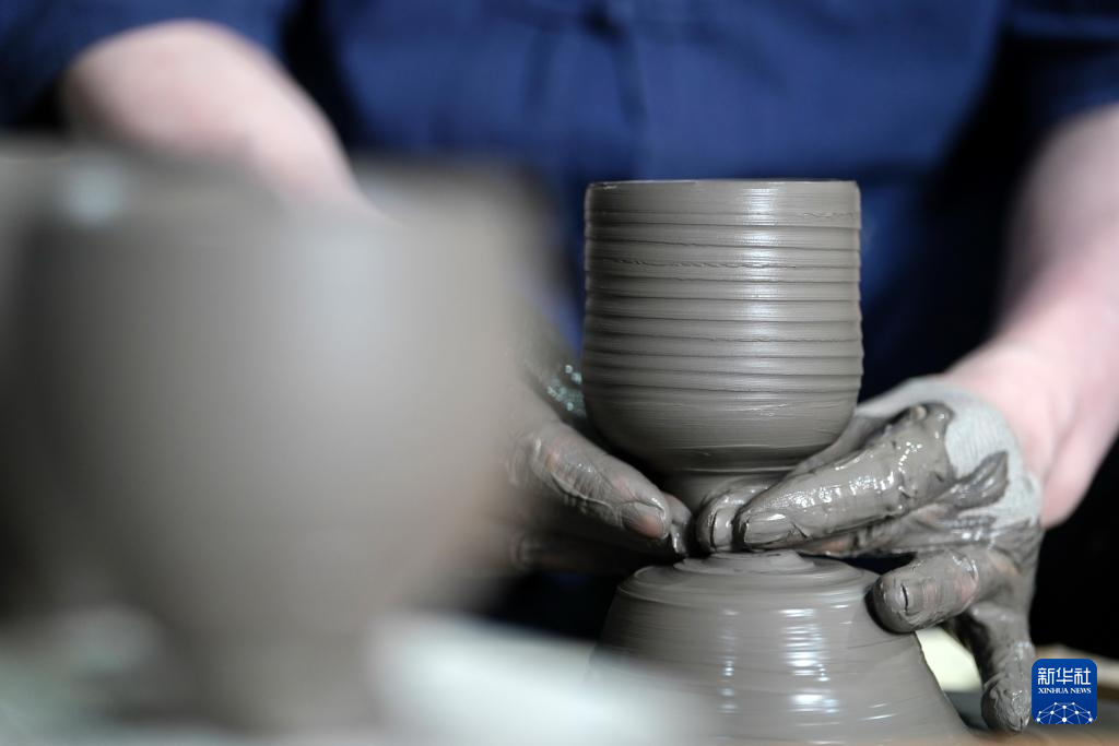 6月28日,在河北省临城县邢窑文化博览园,张志忠进行邢白瓷拉坯作业。