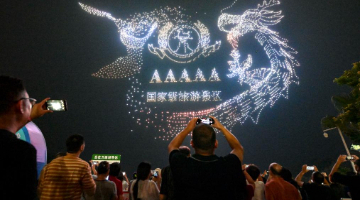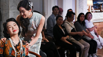 游客在位于永庆坊的粤剧艺术博物馆里拍照(7月11日摄)。