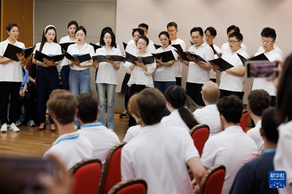 7月14日,在中国交响乐团,河北省正定中学合唱团在演唱。