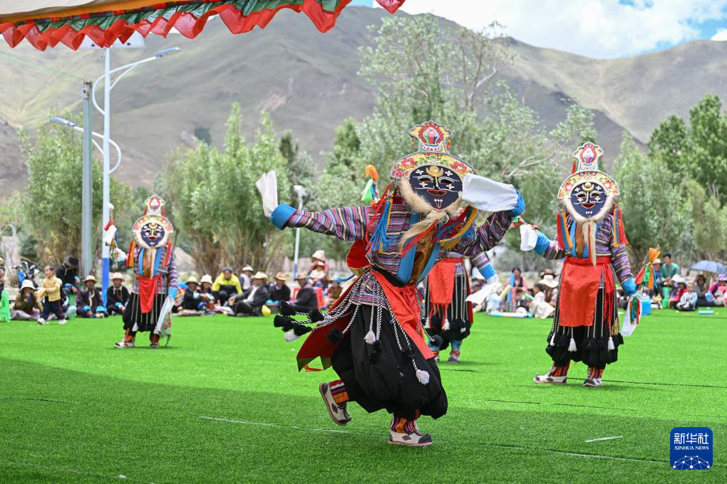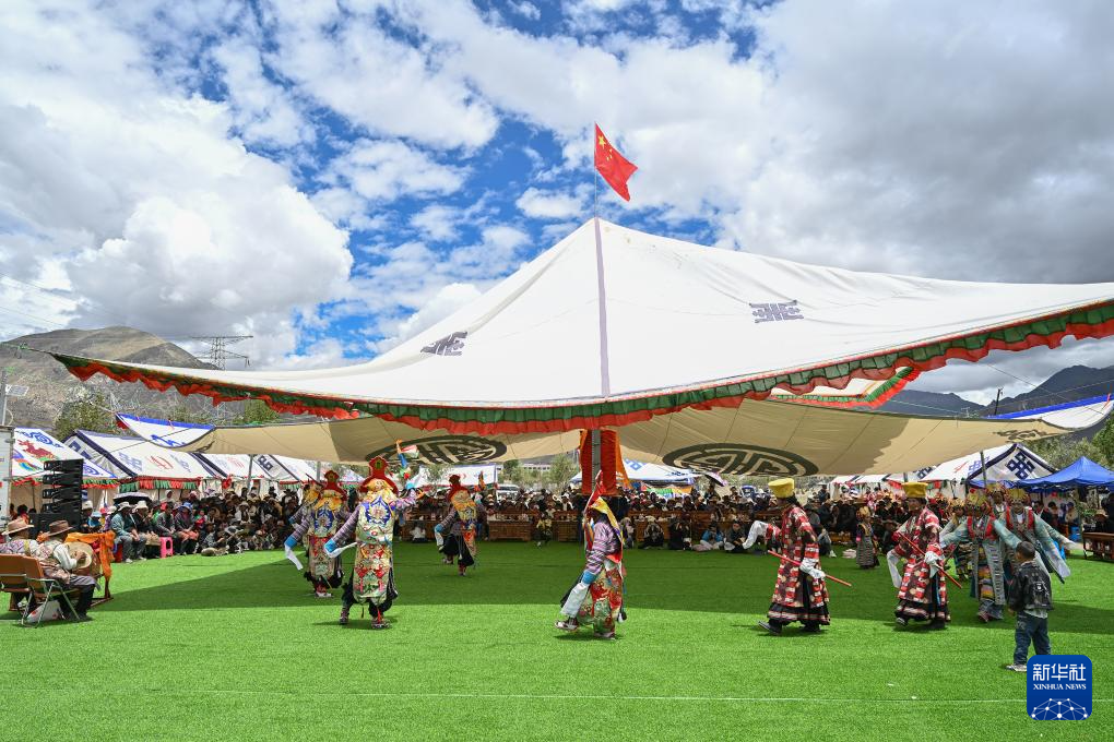7月16日,民间藏戏表演队在南木林县非遗公园内表演湘巴藏戏。