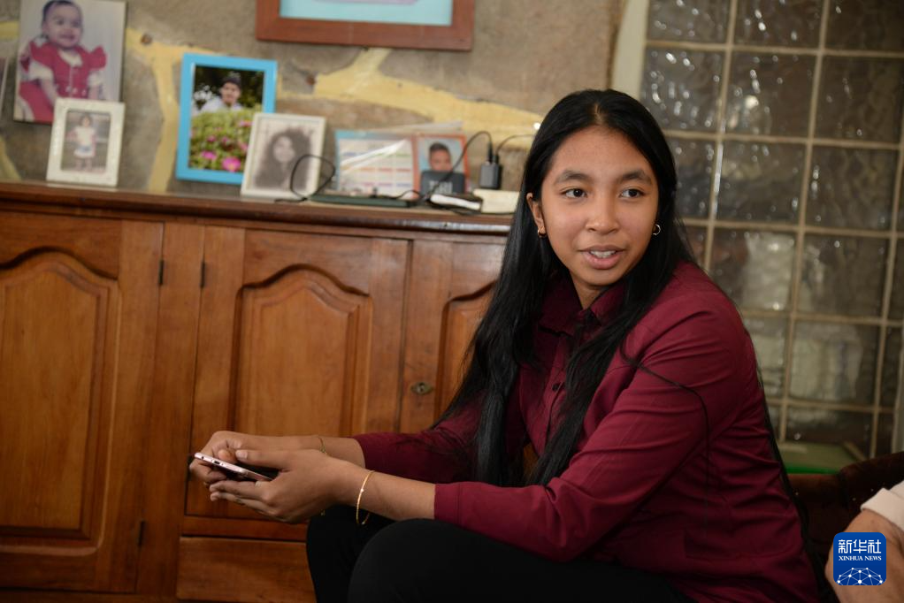 8月12日,在马达加斯加塔那那利佛,彦琳在家中接受记者采访。新华社发(西塔卡·拉乔纳里松摄)