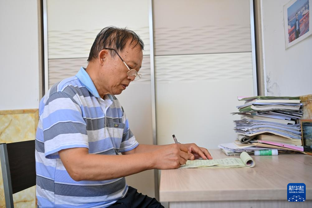 杜德建在位于山西省永济市卿头镇张坊村的家中创作诗歌(9月9日摄)。