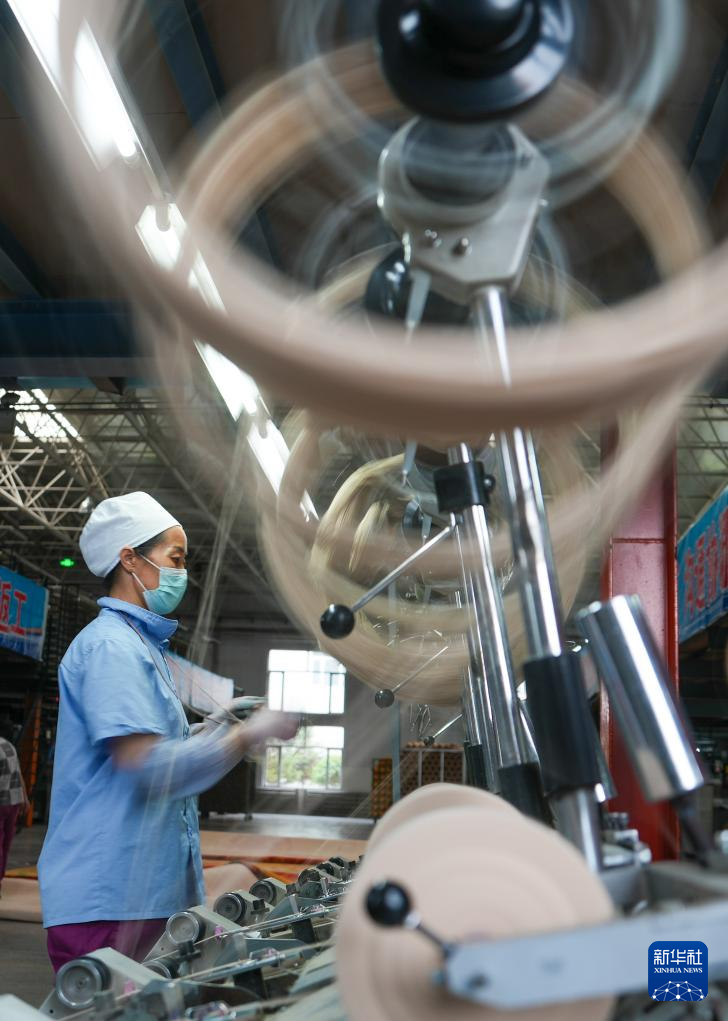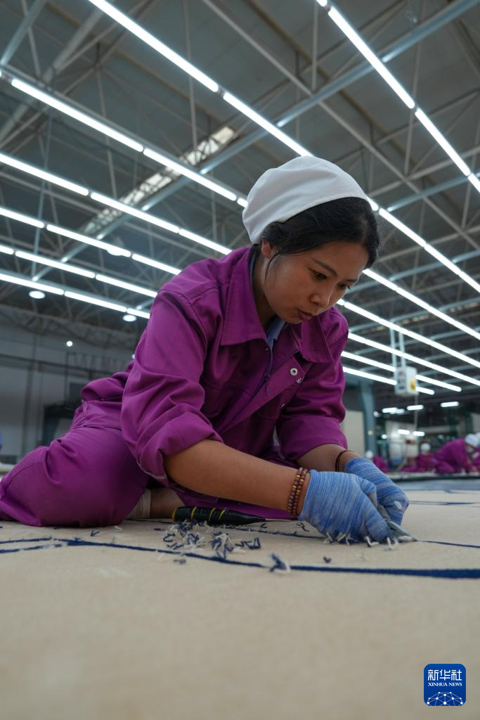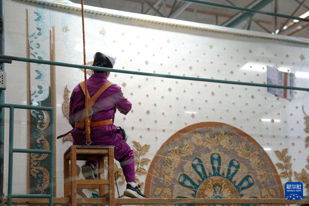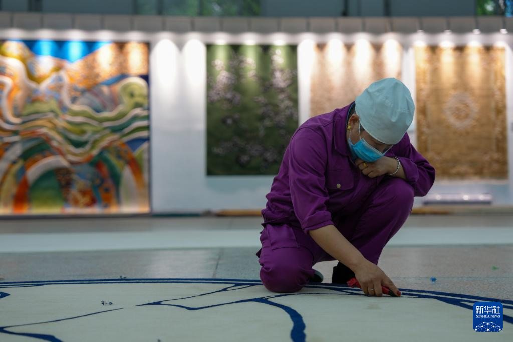 9月27日,在西宁市圣源地毯集团有限公司生产车间,一名操作工在制作藏毯。