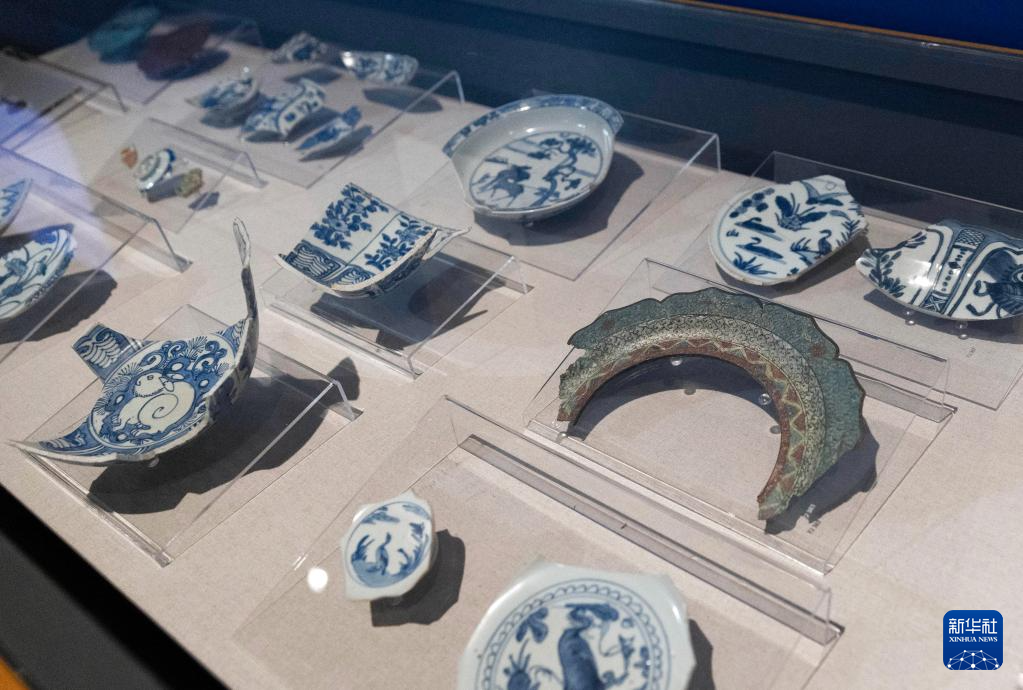 这是12月17日在墨西哥首都墨西哥城举行的马尼拉大帆船主题展上拍摄的中国明清时期器皿残片。