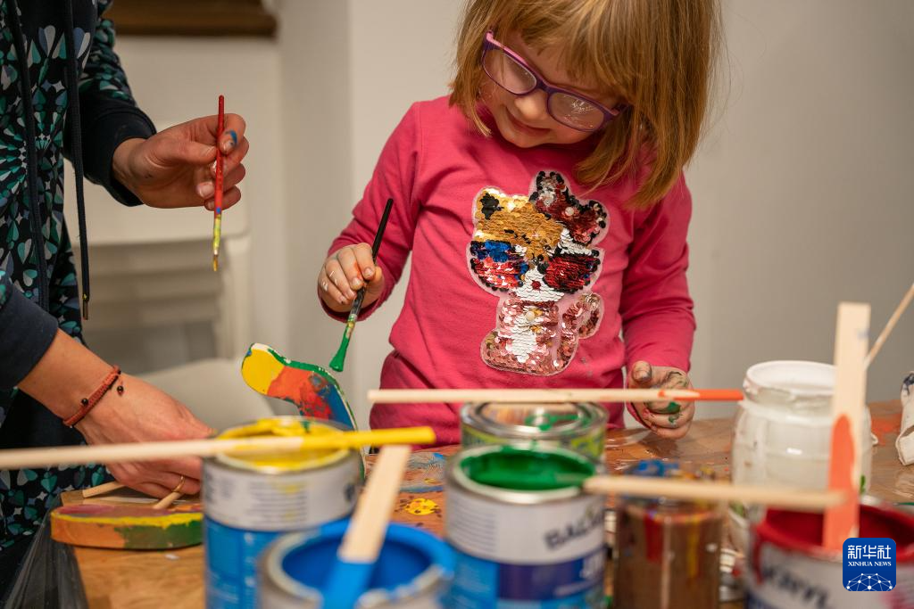 1月10日,在捷克布拉格博物馆,一名男孩和妈妈一起制作木偶。