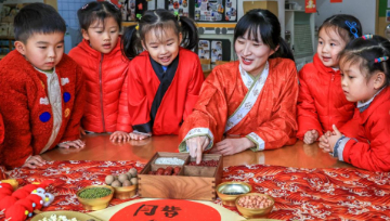 1月26日晚,小朋友在甘肃省博物馆一楼大厅参与“翻翻快乐”趣味活动。