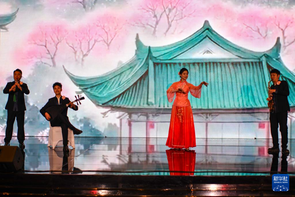1月29日,演员在埃及开罗表演爵士南音《直入花园》。