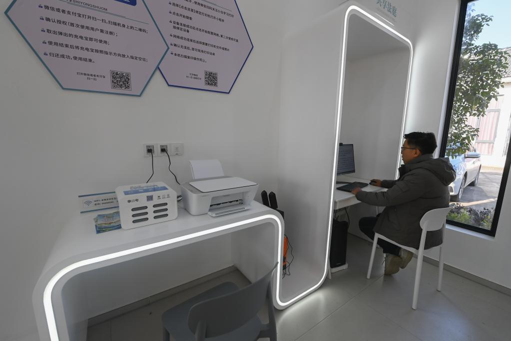12月13日,村民在浙江省湖州市吴兴区道场乡红里山村新建的农家书屋内体验免费线上阅读。