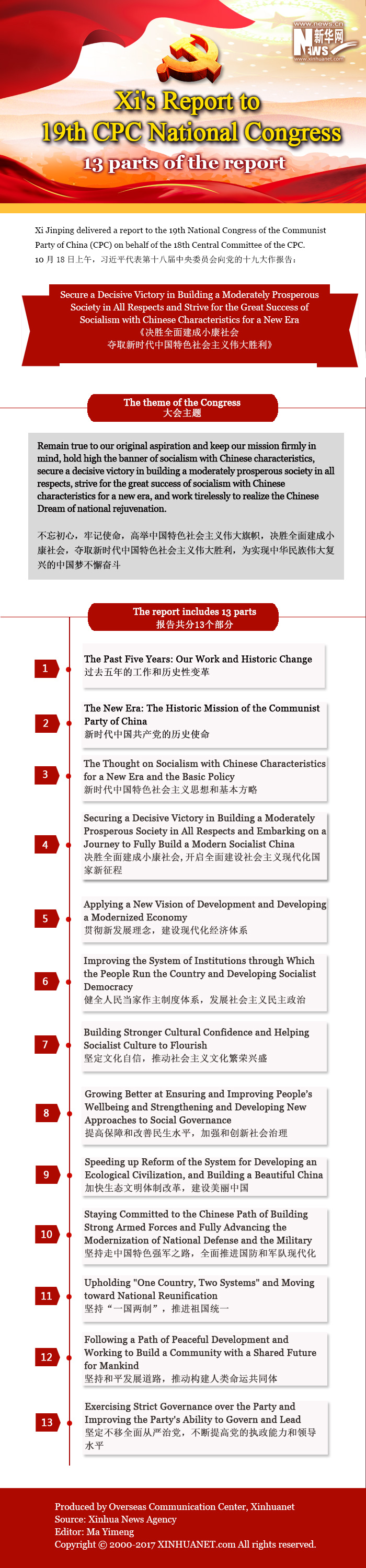 Infographic: 13 parts of Xi's report to 19th CPC National Congress