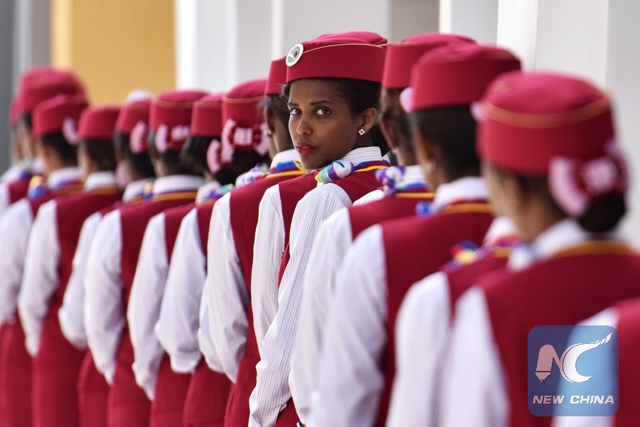 Ethiopian attendants participate during the opening ceremony of Ethiopia-Djibouti railway at the Lebu station in Addis Ababa, Ethiopia, on Oct. 5, 2016. (Xinhua/Sun Ruibo)