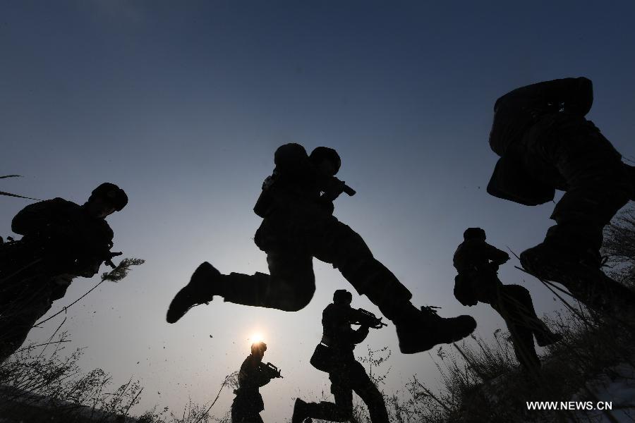 An armed police unit in N China's Shanxi has a training on Jan. 5, 2018. (Xinhua photo)