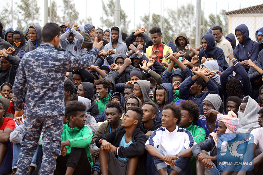 TRIPOLI, Feb. 6 (Xinhua) -- Stefano Chammen is a 27-year-old illegal immigrant from Eritrea, who is now in the Al-Hamra refugee center in Gharyan city, some 75 km south of the Libyan capital Tripoli.