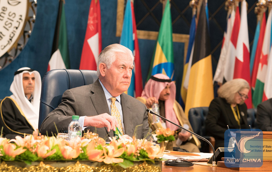 KUWAIT CITY, Feb. 13 (Xinhua) -- The United States pledges 200 million U.S. dollars in support of the anti-IS coalition efforts in Syria, U.S. Secretary of State Rex Tillerson announced Tuesday.