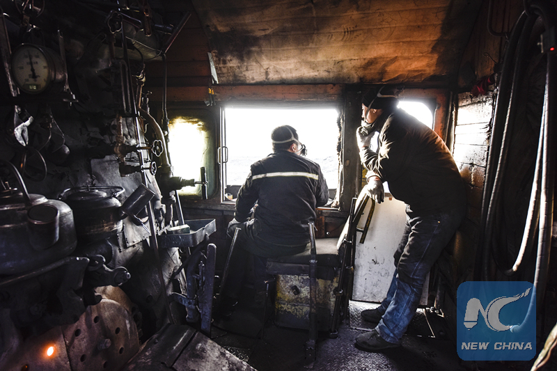A steam train in Sandaoling. (Xinhua/Zhao Ge)