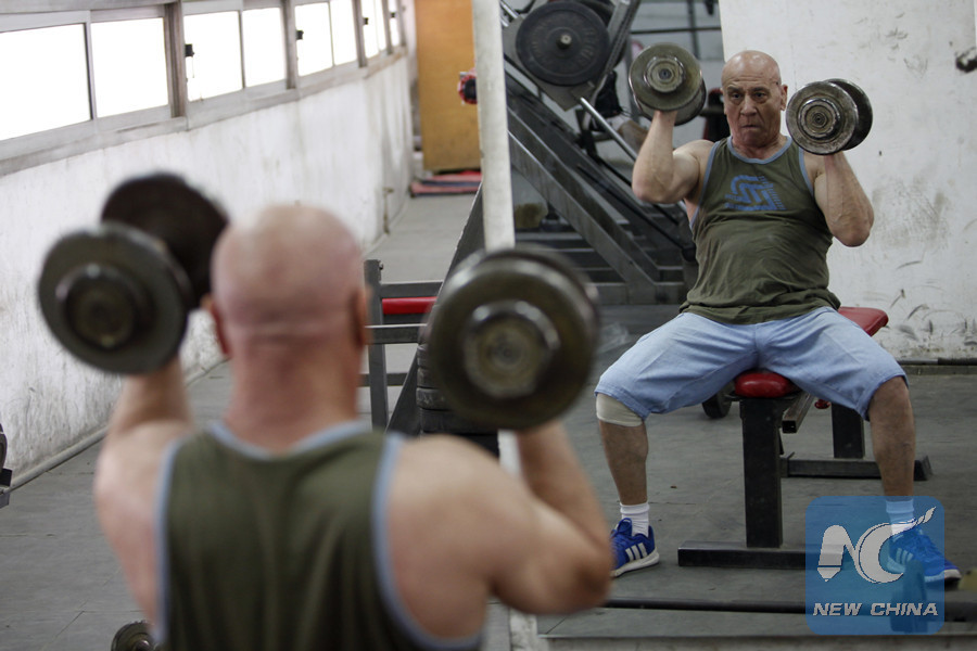 80-year-old Sobhi Mohammed does exercises at al-Shams club on the outskirts of Cairo, Egypt on March 11, 2018. (Xinhua/Ahmed Gomaa)