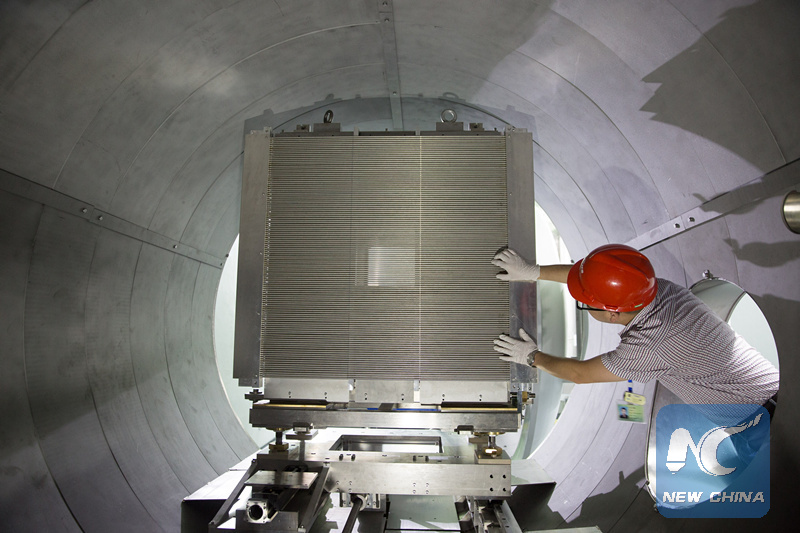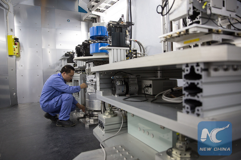 File photo shows an engineer debugs a neutron instrument for the China Spallation Neutron Source (CSNS) in Dongguan, south China's Guangdong Province, Sept. 1, 2017.
