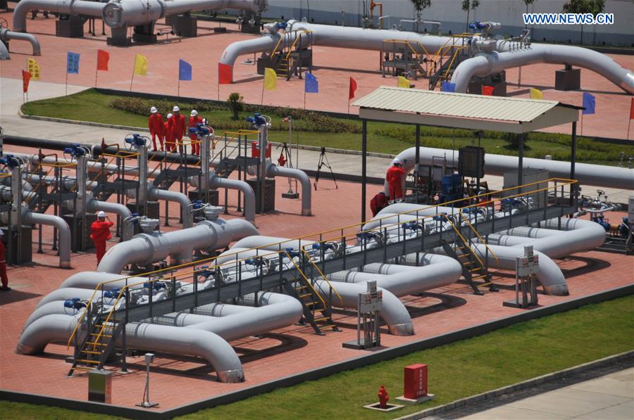 Photo taken on May 19, 2017 shows the Ruili station of the China-Myanmar crude oil pipeline in Ruili, southwest China's Yunnan Province. China launched trading of crude oil futures contracts at the Shanghai International Energy Exchange on Monday in its steady move of opening up the financial sector. It was the first futures contracts listed on China's mainland to overseas investors, putting domestic and foreign investors on an equal footing. (Xinhua/Yao Bing)