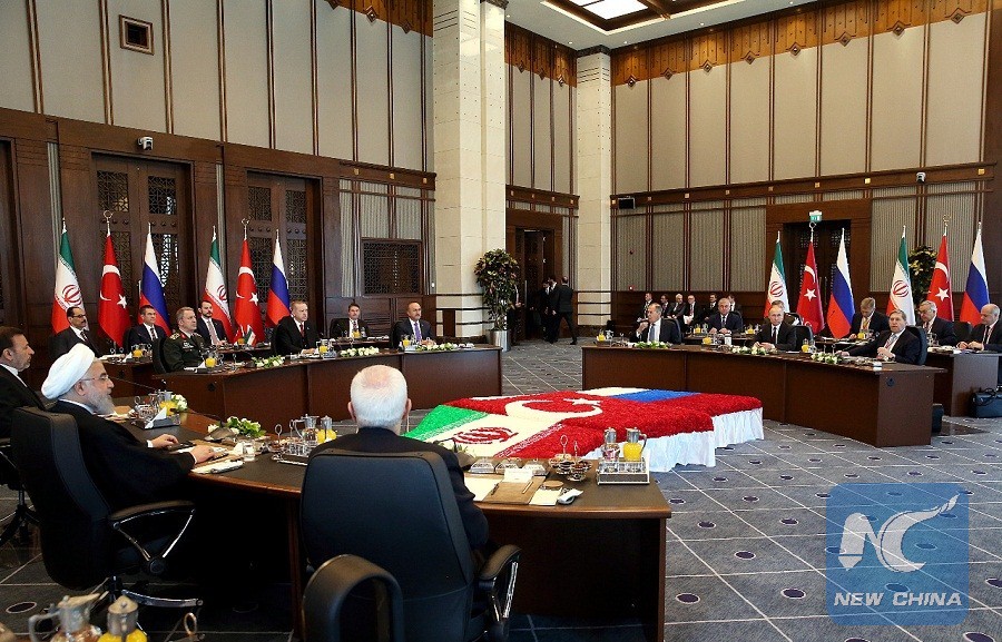 Turkey, Iran, Russia on Wednesday call for lasting ceasefire, territorial integrity in Syria. (Xinhua Photo)
