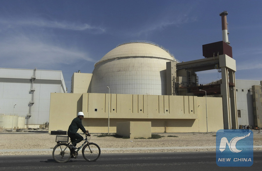 In this Oct. 26, 2010 file photo, a worker rides a bike in front of the reactor building of the Bushehr nuclear power plant, just outside the southern city of Bushehr, Iran. (AF photo)