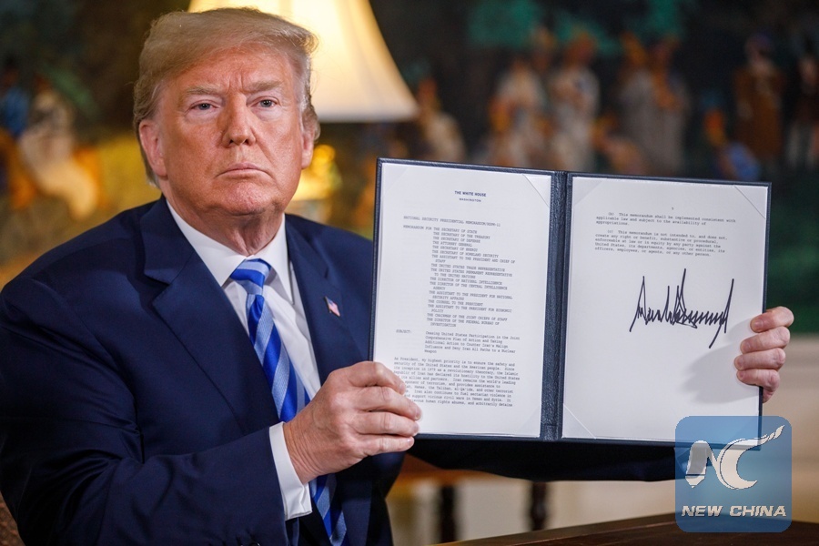 U.S. President Donald Trump said Tuesday that the United States will withdraw from the Joint Comprehensive Plan of Action, commonly known as the Iran nuclear deal, and impose "the highest level" of economic sanctions on Tehran, triggering global outcry.