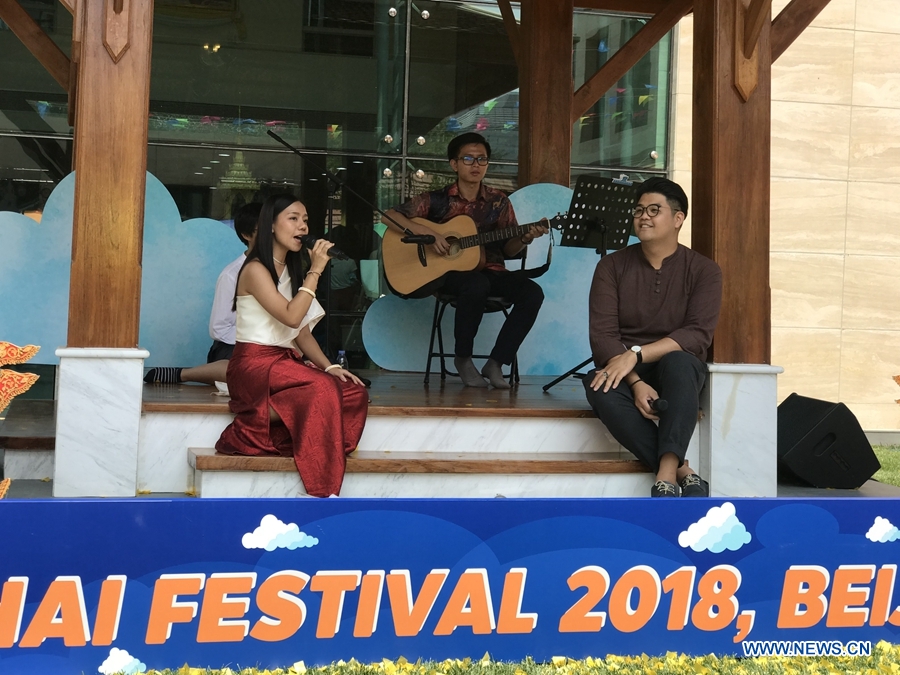 A singing show is staged at the Thai Festival 2018 “Spice up Your Day with Thai Tastes”. The festival was held at the Royal Thai Embassy, Beijing, June 23, 2018. This is the second time that the Thai Festival is organised here as guests can enjoy various activities in the midst of Thai surroundings. (Xinhuanet/Liang Yurou)