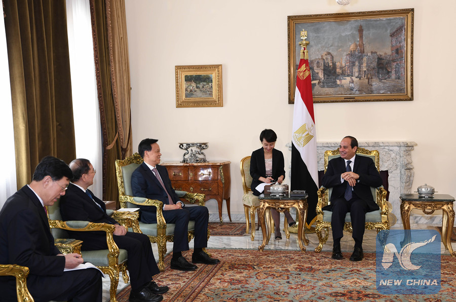 Sisi introduced to Chen Egypt's perspectives on relevant global and regional issues, expressing Egypt's willingness to boost cooperation with China to safeguard the interests of developing countries.