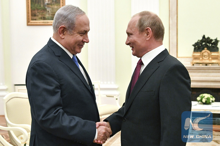JERUSALEM, July 11 (Xinhua) -- Israeli Prime Minister Benjamin Netanyahu met with Russian President Vladimir Putin in Moscow on Wednesday, telling the Russian leader that Israel will act firmly against anyone attempting to breach its borders.