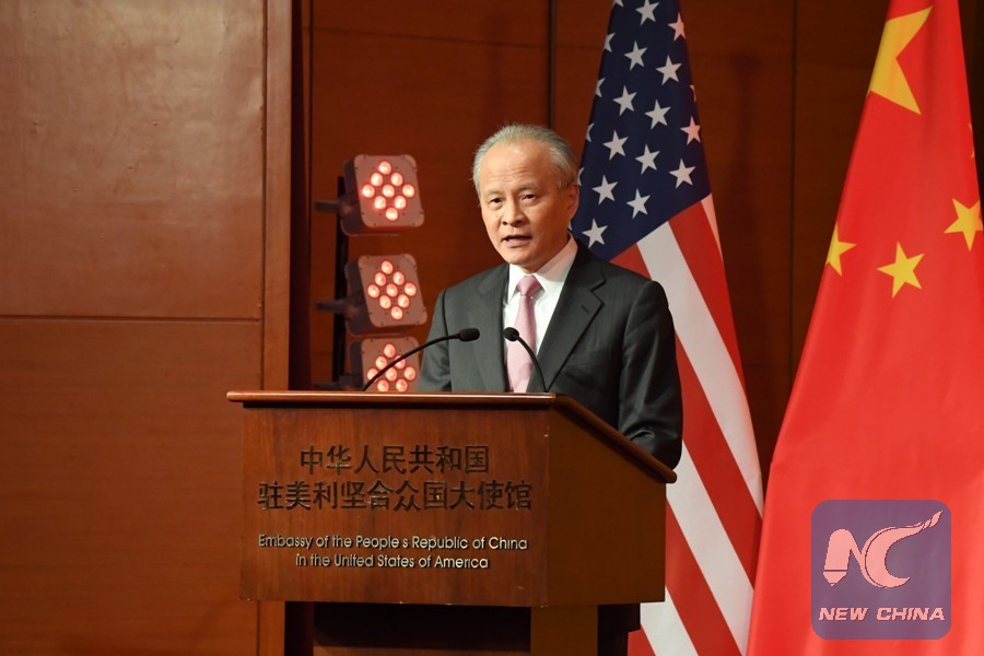 WASHINGTON, July 19 (Xinhua) -- Chinese Ambassador to the United States Cui Tiankai has refuted accusations by the Trump administration against China on trade, noting that only consultations based on mutual respect and trust will lead to a proper settlement of their current dilemma.