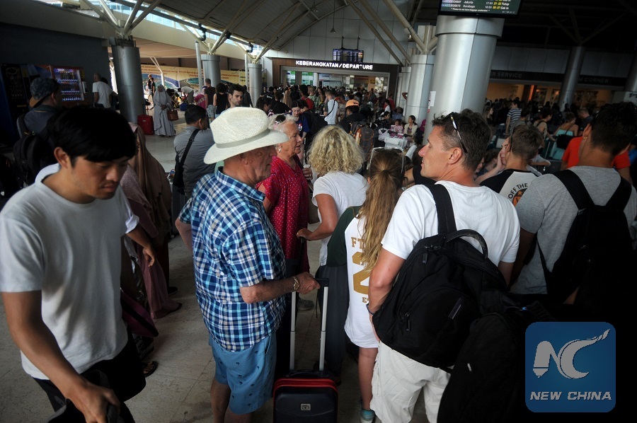 MATARAM, Indonesia, Aug. 7 (Xinhua) -- Thousands of foreign tourists have flocked to the Lombok airport, waiting for flights to fly them out of Lombok, an Indonesian resort island in West Nusa Tenggara (NTB) province following a devastating earthquake on Sunday night.