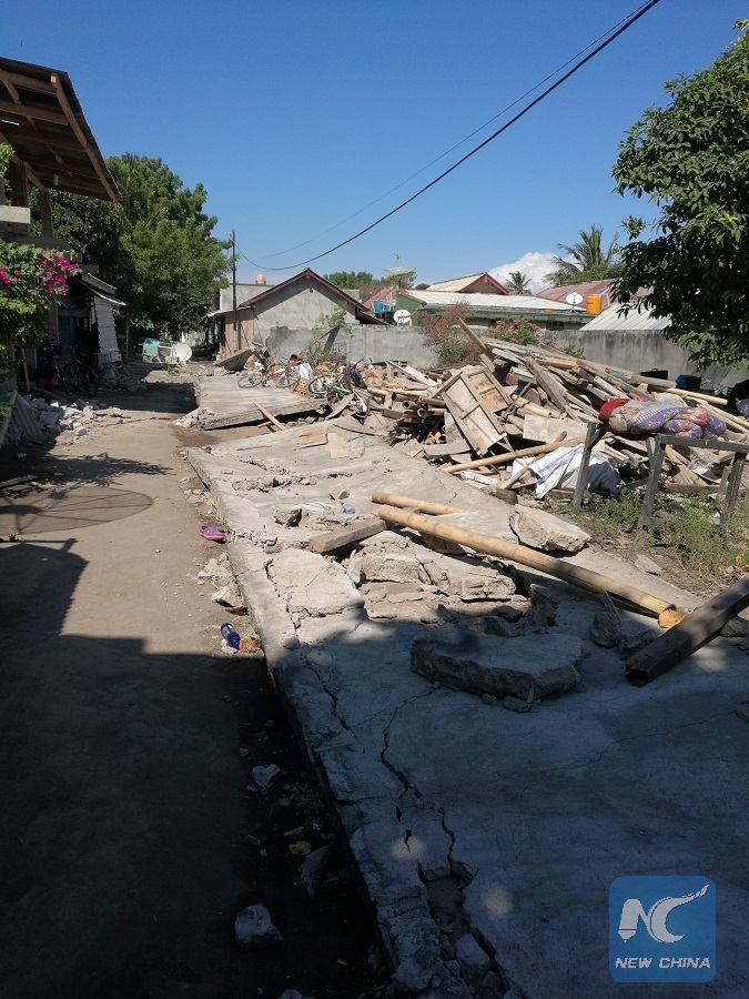 Photo taken on Aug. 6, 2018 shows damaged houses on Gili Trawangan near Lombok Island in central Indonesia. (Xinhua/Liang Fangfang)