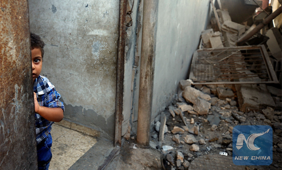 A Palestinian boy looks out of his family's house that was damaged in an Israeli air strike, in Al-Mughraqa on the outskirts of Gaza City August 9, 2018. (REUTERS)