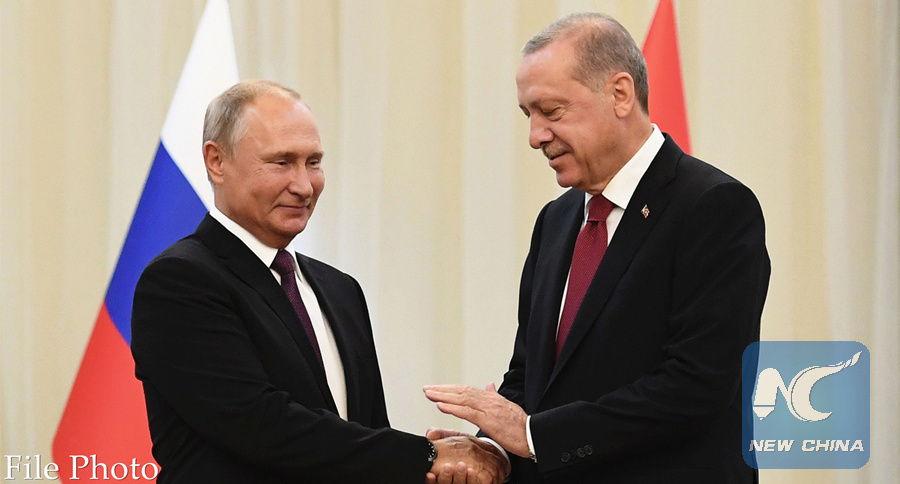 MOSCOW, Sept. 16 (Xinhua) -- Russian President Vladimir Putin will discuss Syrian issues with his Turkish counterpart Recep Tayyip Erdogan in Russia's Sochi on Monday, the Kremlin said in a statement Sunday.