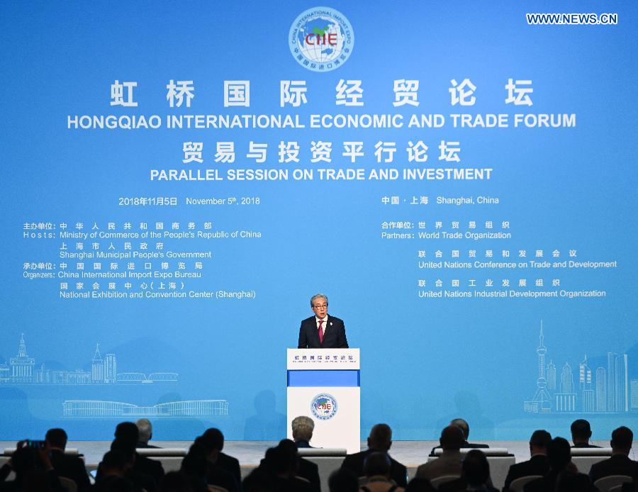 Thailand's Deputy Prime Minister Somkid Jatusripitak speaks at the Parallel Session on Trade and Investment of the Hongqiao International Economic and Trade Forum in Shanghai, east China, Nov. 5, 2018.(Xinhua/Chen Yehua)