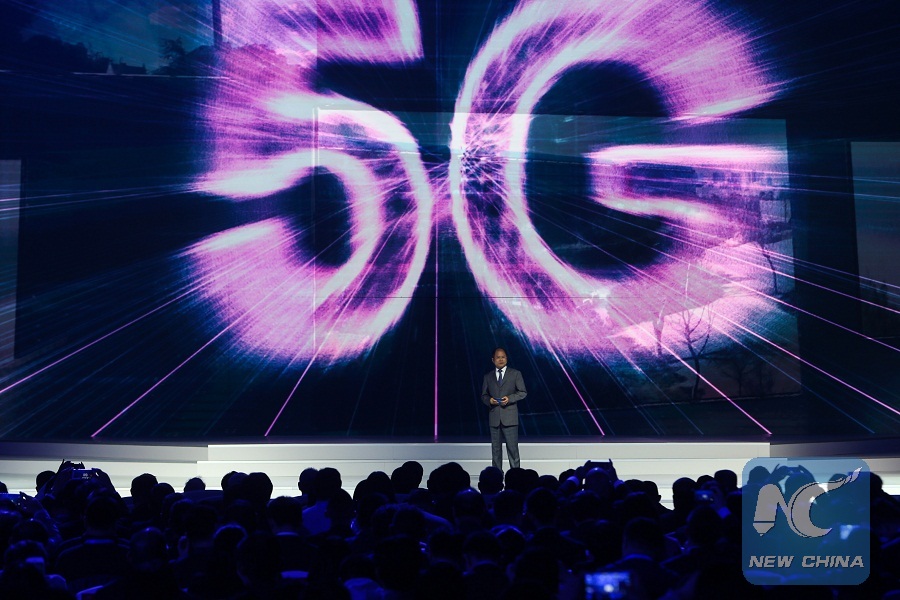 Xu Zhijun, Huawei's rotating CEO, introduces achievements of 5G technology during the release ceremony for world leading Internet scientific and technological achievements in Wuzhen, east China's Zhejiang Province, Dec. 3, 2017. (Xinhua/Zheng Huansong)