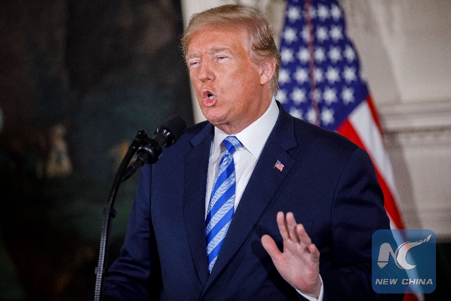 File Photo: U.S. President Donald Trump delivers a speech at the White House in Washington D.C., the United States, on May 8, 2018. U.S. President Donald Trump said that the United States will withdraw from the Iran nuclear deal, a landmark agreement signed in 2015. (Xinhua/Ting Shen)
