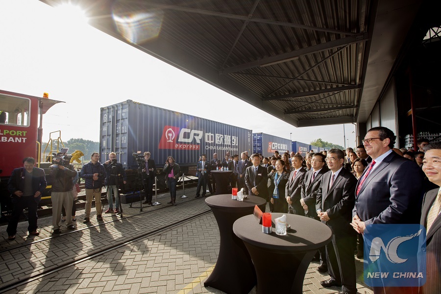 TILBURG, The Netherlands, May 22 (Xinhua) -- Chinese and Dutch railway link operators on Tuesday celebrated three years of successful operation of cargo express between Chengdu and Tilburg and signed a MOU with the Port of Rotterdam to extend subsequent transportation via this route and transit from eastern coastline of North America, Britain, Ireland, Scandinavian and Baltic areas.