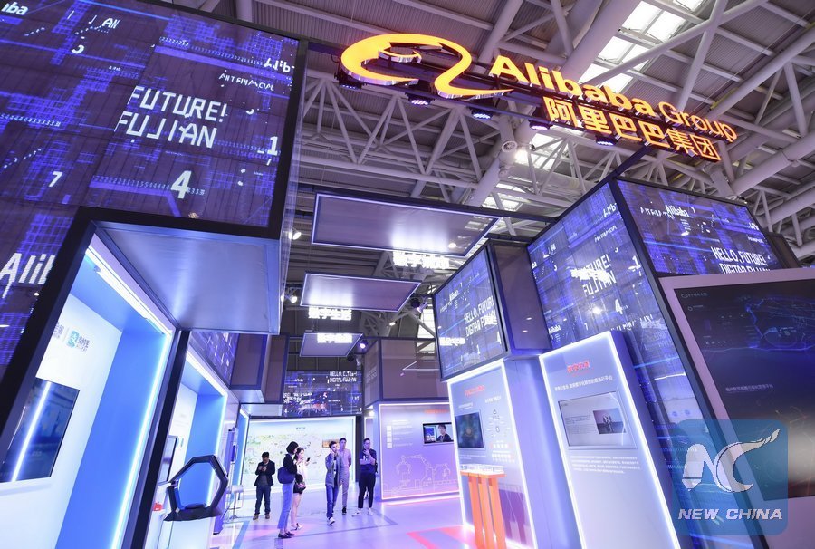 Photo taken on May 5, 2019 shows the booth of Alibaba Group at the 2nd Digital China Exhibition in Fuzhou, southeast China's Fujian Province.(Xinhua/Lin Shanchuan)