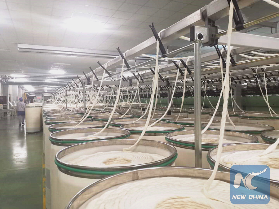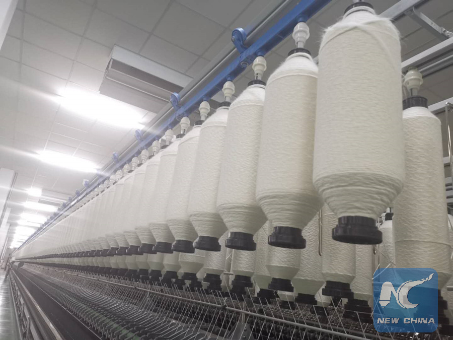 Spindles of yarn are seen at a textile factory of China's Zhongtai (Dangara) New Silk Road Textile Industry Company in Dangara, Tajikistan on May 24, 2019. (Xinhua/Liao Bingqing)